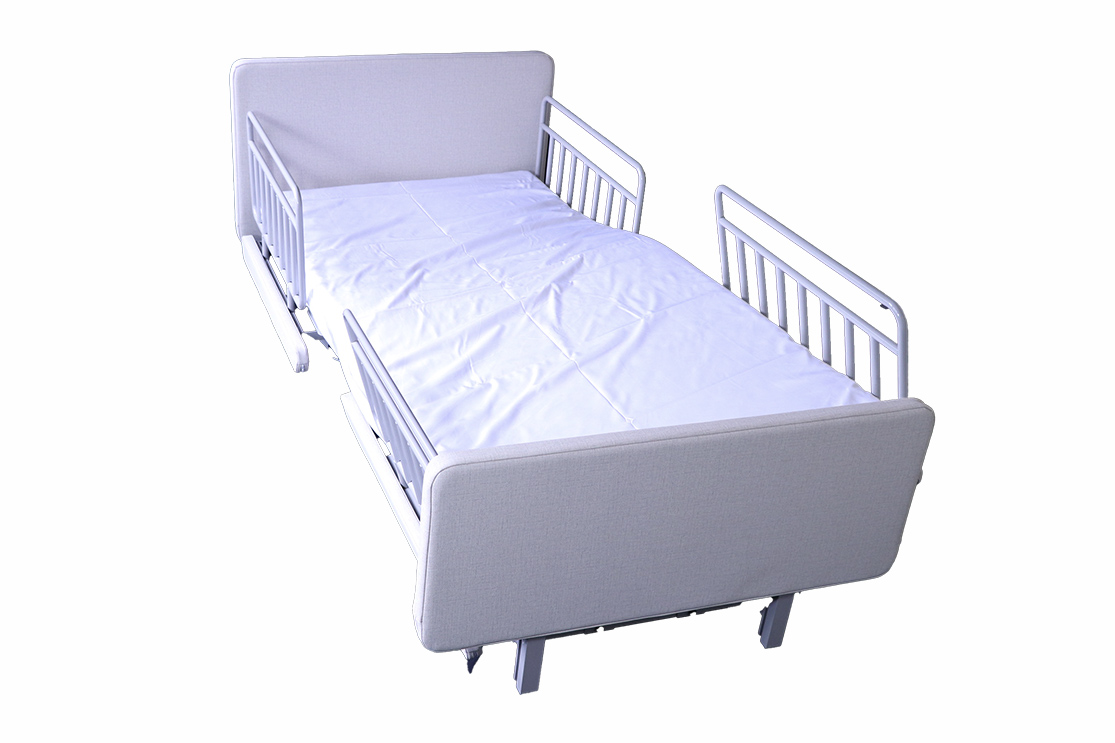 万床は上下2分割されたベッドボードがそれぞれ揺り籠式に横へ回転することにより移乗動作や体位変換を支援できます。揺り籠式は人を外に振り落とす感覚が無く、逆に内側にホールドする感覚が得られる為、心地よく使用することが可能です。その為安全に安心して使用でき、操作時間を長くかけずに簡単に使用することが可能です。