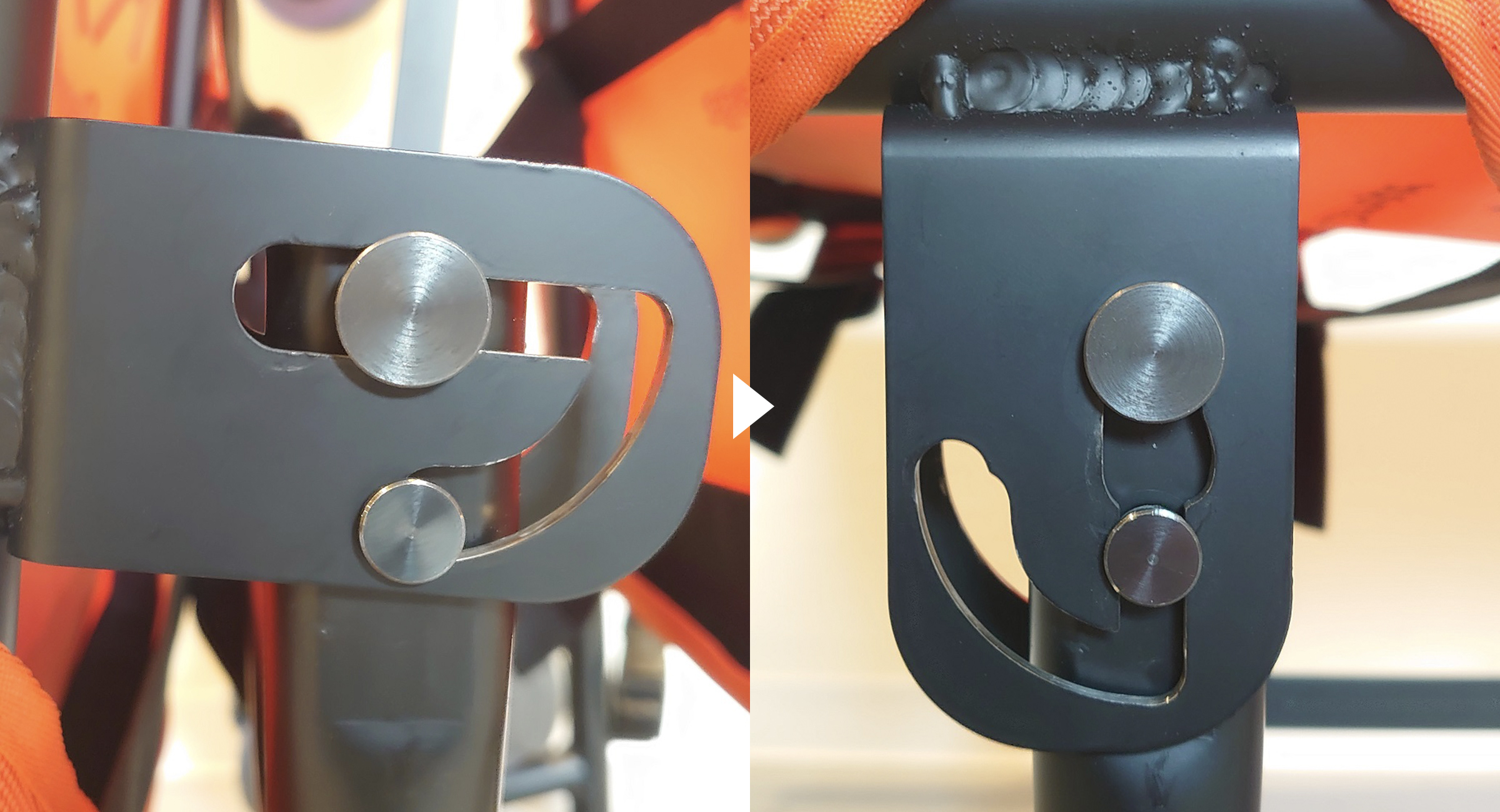 「救馬」は傾きによって自動でロックされる設計となっており、ロック解除や固定の手間が不要です。操作ミスや煩雑な作業を減らし、緊急時にも安心して使用できます。ロックの手順を簡素化することで、作業効率が向上し、より安全に対応できることが特徴です。