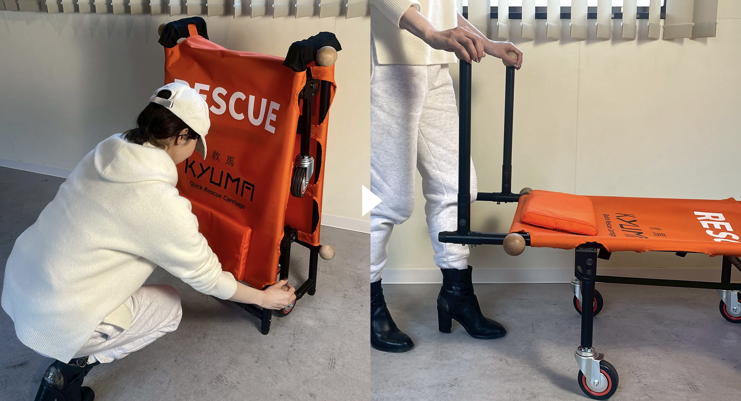 「救馬」は折りたたんだ状態からワンタッチ操作で瞬時に広げることができ、スピーディな対応が可能です。緊急時の迅速な準備が求められる現場でも、手間なく使用できるため、時間を大幅に短縮します。簡単な操作で即座に使えることが、救護活動の効率化に大きく貢献します。