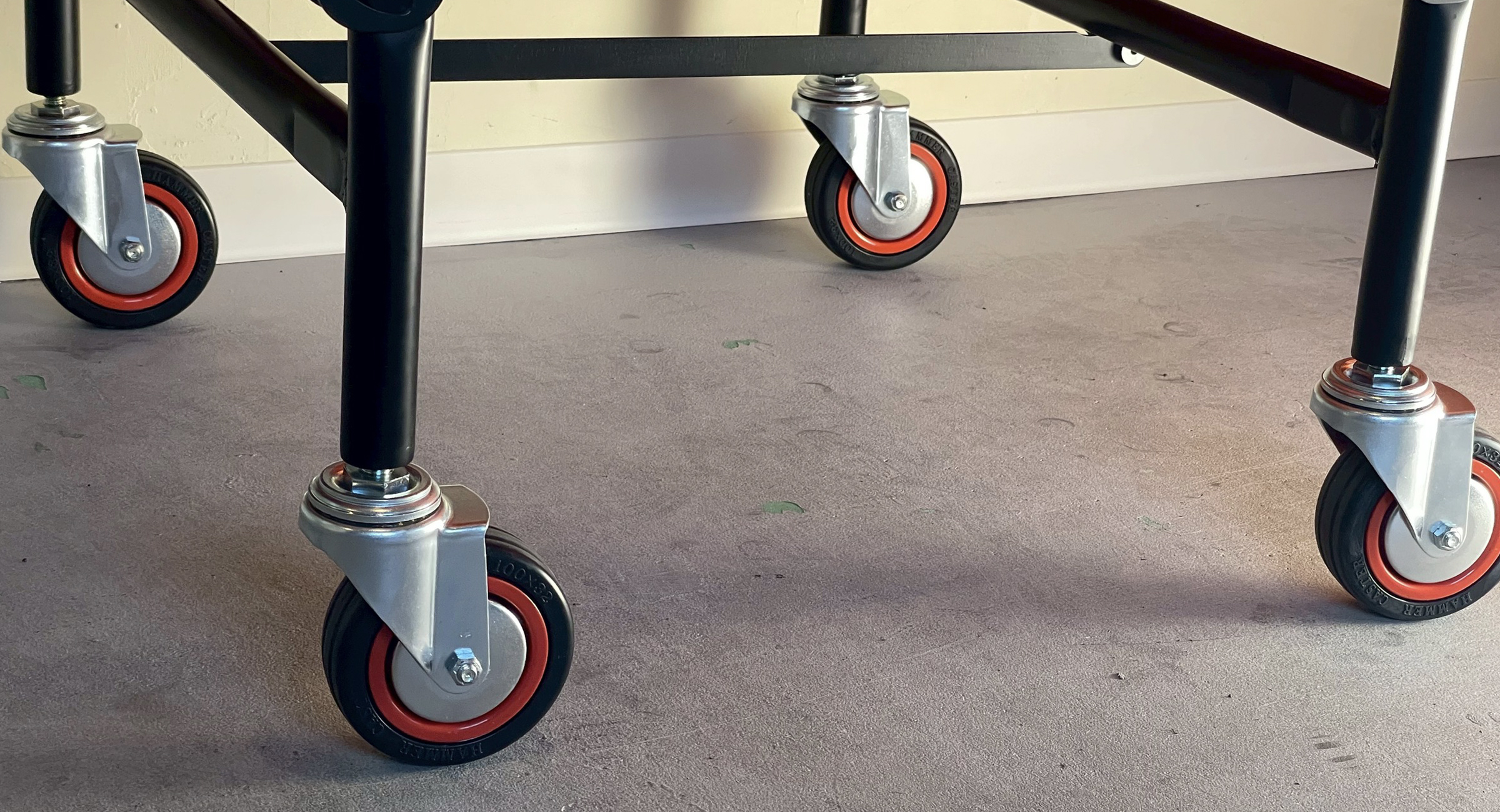 救馬は高性能キャスターを搭載しており、通常の担架に比べて少ない 力で滑らかな移動が可能です。急な方向転換や停止もスムーズに行え ます。これにより、迅速かつ安全な救護活動が実現します。