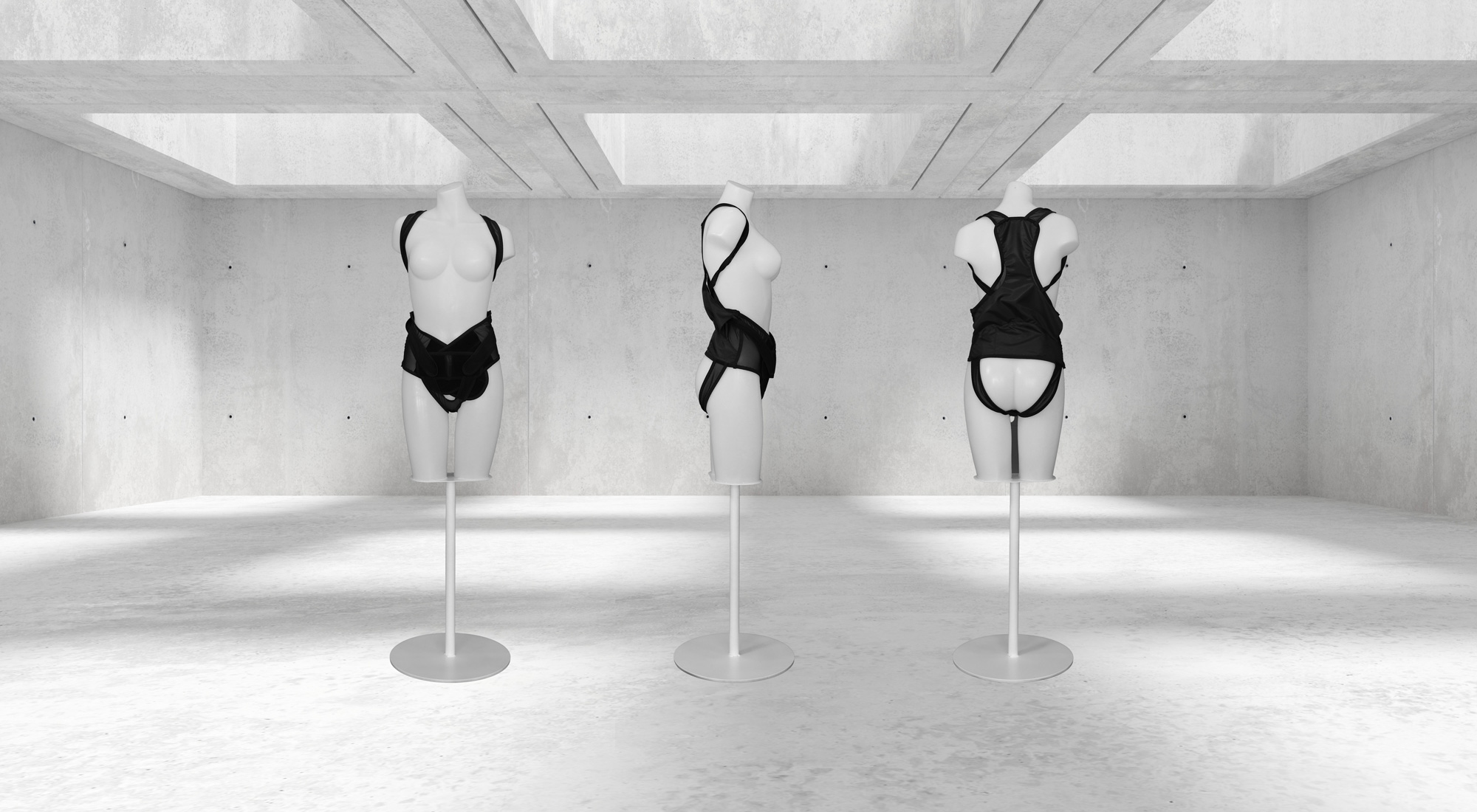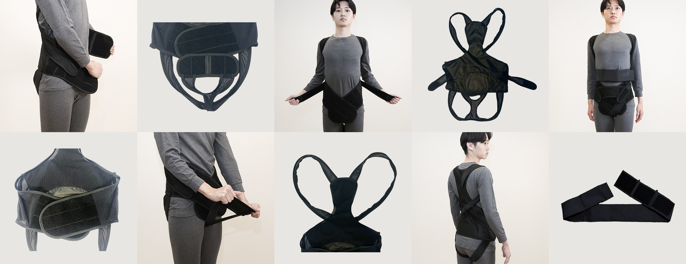 これらを一つのハーネスで実現したことにより部分矯正ではなく身体の体幹部(鎖骨から骨盤まで)を正常な動きに促せるよう連動機能も促し、身体全体が円滑でスムーズに動けるようメカニズムされています。